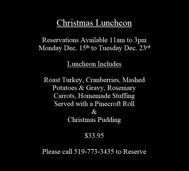 FOR RESERVATIONS PLEASE CALL (519) 773-3435